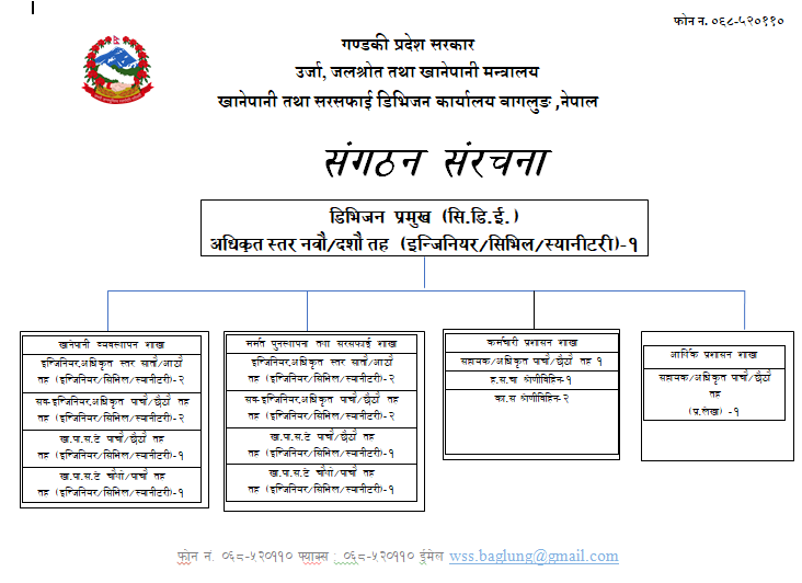 © सर्वाधिकार सुरक्षित खानेपानी तथा सरसफाइ डिभिजन कार्यालय, बाग्लुङ्ग